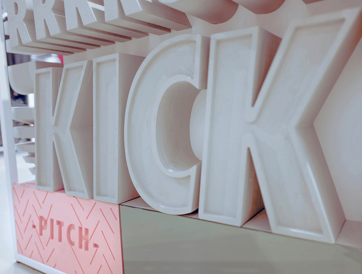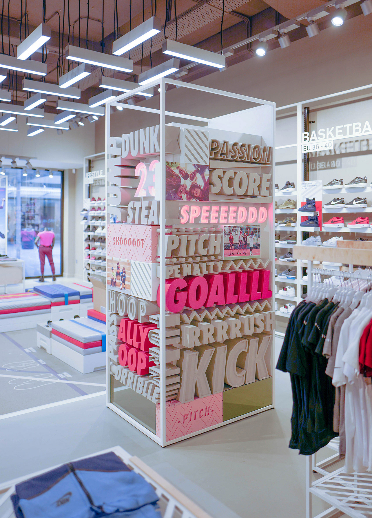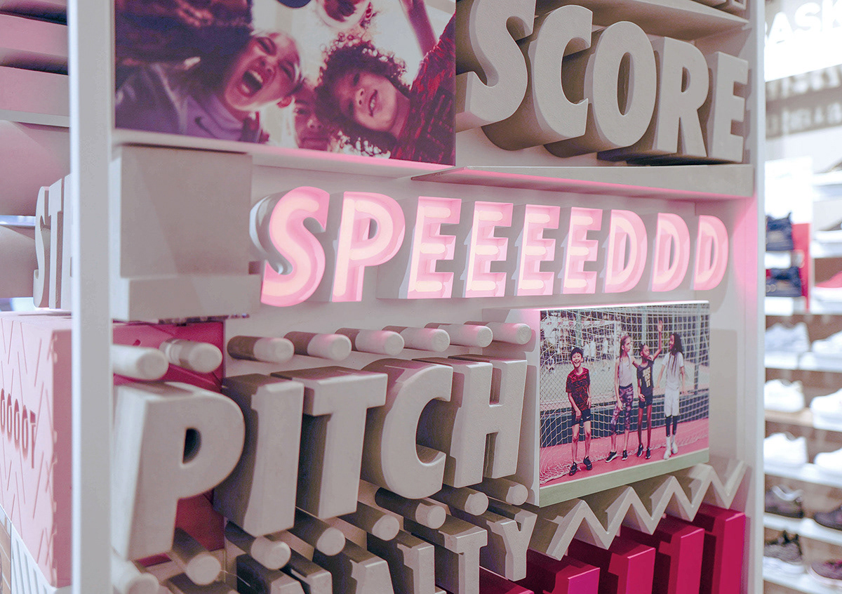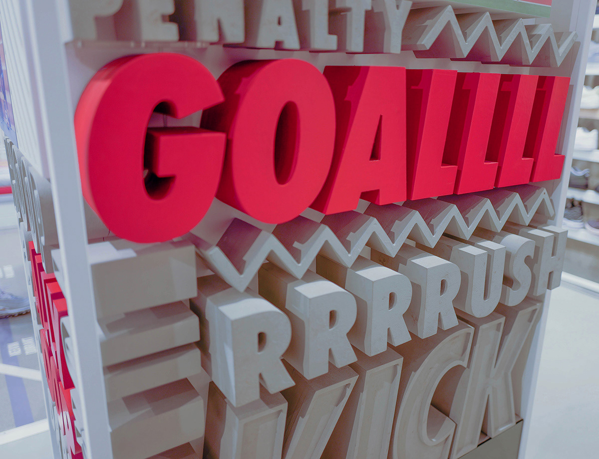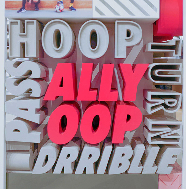 The Nike Space Environment team approached me to design shoe highlighters and a standalone typographical 3D column. Design - Joey David Kops.